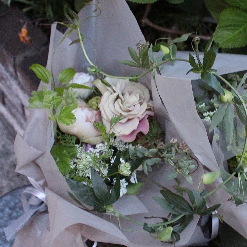 スタイリッシュな花々で束ねた季節の花のBouquetです。